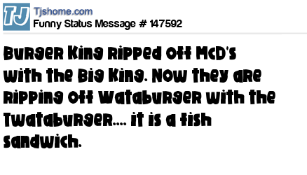 X says Burger King ripped off McD's with the Big King. Now they are ripping off Wataburger with the Twataburger.... it is a fish sandwich.