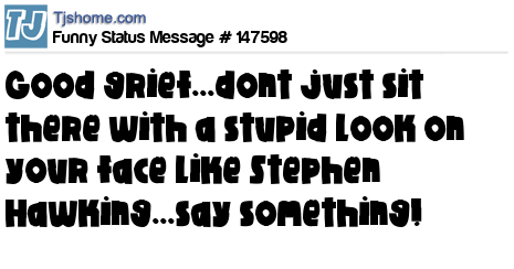 X says Good grief...dont just sit there with a stupid look on your face like Stephen Hawking...say something!