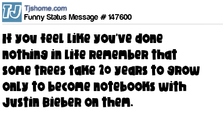 X says If you feel like you've done nothing in life remember that some trees take 20 years to grow only to become notebooks with Justin Bieber on them.