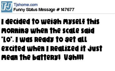 - # 185366 I decided to weigh myself this morning when the scale said "Lo". I was ready to get all excited when I realized it just mean the battery! Ugh