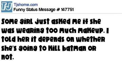 - # 171265 Some girl just asked me if she's wearing too much make-up. I told her that depends on whether she's trying to kill Batman or not.