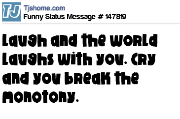 X says Laugh and the world laughs with you. Cry and you break the monotony.