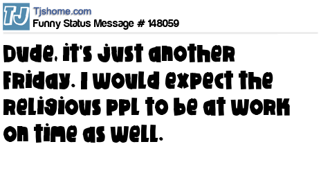 X says Dude, it's just another Friday. I would expect the religious ppl to be at work on time as well.