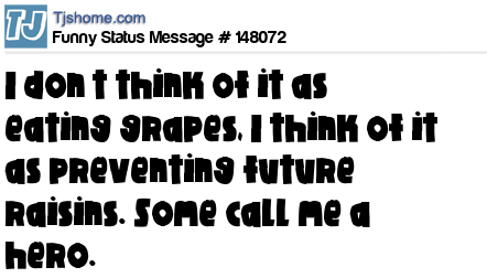 X says I don’t think of it as eating grapes, I think of it as preventing future raisins. Some call me a hero.