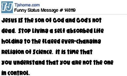 X says Jesus IS the son of God and God's not dead.  Stop living a self absorbed life holding to the flaeed ever-changing religion of Science.  it is time that you understand that you are not the one in control.