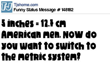 X says 5 inches = 12.7 cm American men, NOW do you want to switch to the metric system?