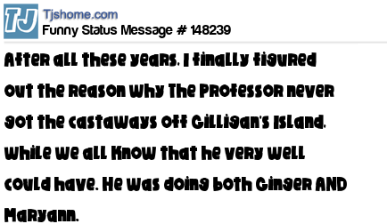 X After all these years, I finally figured out the reason why The Professor never got the castaways off Gilligan's Island, while we all know that he very well could have. He was doing both Ginger AND Maryann.