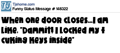 X says When one door closes…I am like, "Dammit! I locked my f cuking keys inside"