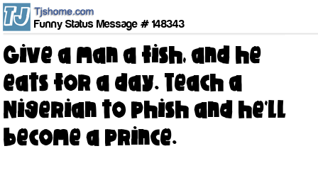X says Give a man a fish, and he eats for a day. Teach a Nigerian to phish and he'll become a prince.