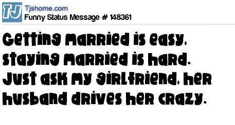 X says Getting married is easy, staying married is hard. Just ask my girlfriend, her husband drives her crazy.