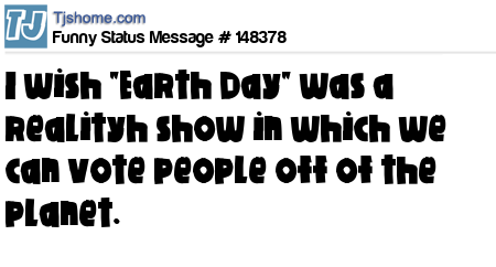 X I wish "Earth Day" was a realityh show in which we can vote people off of the planet.