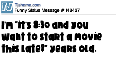 - # 138234 I'm "it's 8:30 and you wanna start a movie this late?" years old.