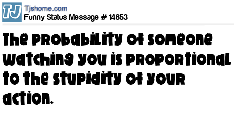 - # 21673 probability of someone watching you is proportional to the stupidity of your action.