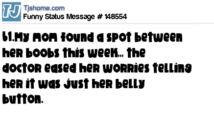 X 61.My mom found a spot between her boobs this week,,, the doctor eased her worries telling her it was just her belly button.