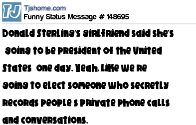 X says Donald Sterling's girlfriend said she's “going to be president of the United States” one day. Yeah, like we’re going to elect someone who secretly records people’s private phone calls and conversations.