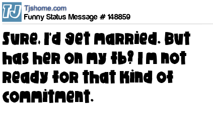 X  Sure, I'd get married. But has her on my fb? I’m not ready for that kind of commitment.
