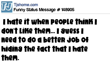 X says I hate it when people think I don't like them... I guess I need to do a better job of hiding the fact that I hate them.