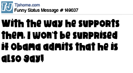 X says With the way he supports them, I won't be surprised if Obama admits that he is also gay!