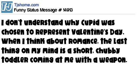 - # 14208 I don't know why Cupid was chosen to represent Valentines Day. When I think of romance,the last thing I think of is a short,chubby child coming at me with a weapon.