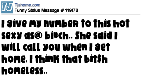 X says I give my number to this hot sexy as@ bi#ch.. She said I will call you when I get home, I think that bit$h homeless..