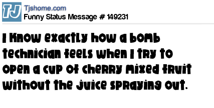 X I know exactly how a bomb technician feels when I try to open a cup of cherry mixed fruit without the juice spraying out.