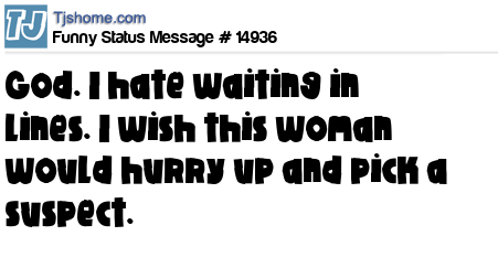 - # 161044 Omg!! I hate waiting in lines. I wish this woman would hurry up and pick a suspect.
