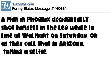 X says A man in Phoenix accidentally shot himself in the leg while in line at Walmart on Saturday. Or, as they call that in Arizona, “taking a selfie.”