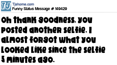 X says Oh thank goodness, you posted another selfie. I almost forgot what you looked like since the selfie 5 minutes ago.