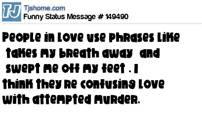X says People in love use phrases like “takes my breath away” and “swept me off my feet”. I think they’re confusing love with attempted murder.