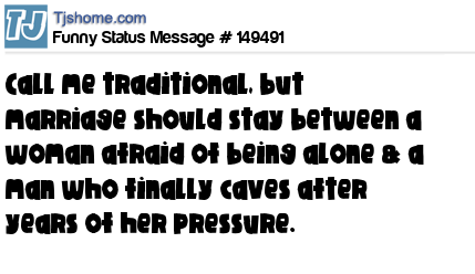 - # 148409 Call me traditional, but marriage should stay between a woman afraid of being alone & a man who finally caves after years of her pressure