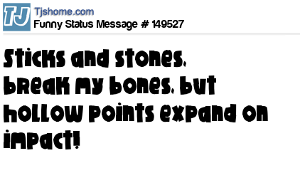 X Sticks and stones, break my bones, but hollow points expand on impact!