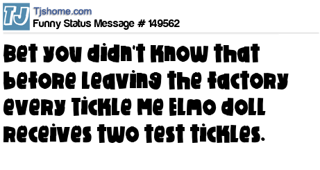 X  Bet you didn't know that before leaving the factory every Tickle Me Elmo doll receives two test tickles.