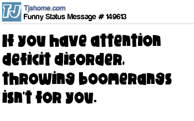 - # 69709 Todays hot tip: Boomerangs and Attention Deficit Disorder don't mix.