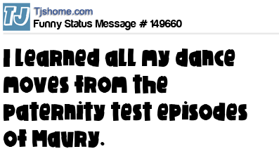 - # 180390 I learned all my dance moves from the paternity test episodes on Maury Povich.