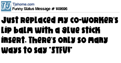 X says Just replaced my co-worker's lip balm with a glue stick insert. There's only so many ways to say "STFU!"