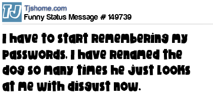 X I have to start remembering my passwords, I have renamed the dog so many times he just looks at me with disgust now.
