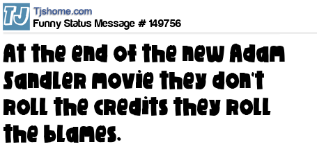 X says At the end of the new Adam Sandler movie they don't roll the credits they roll the blames.