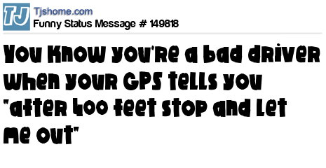X says You know you're a bad driver when your GPS tells you "after 400 feet stop and let me out"