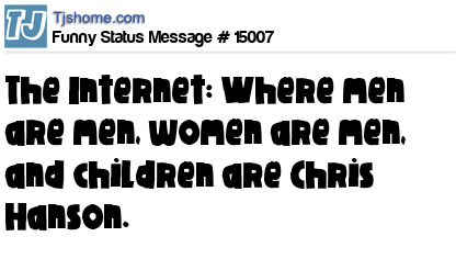- # 33969 Welcome to the real Internet, where the men are men, the women are men, and the children are the FBI.