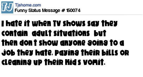 - # 207294 I hate it when TV shows say "Adult Content" but then don't show anyone going to work, paying their bills or cleaning up after the kids... jest sayin