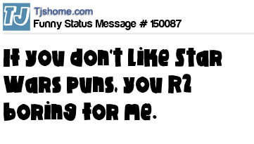 X says If you don't like Star Wars puns, you R2 boring for me.