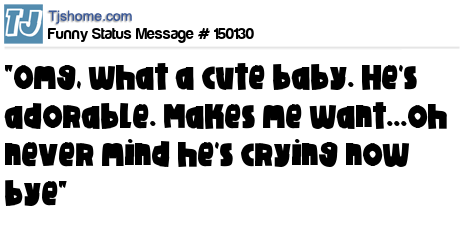 X says "Omg, what a cute baby. He's adorable. Makes me want...oh never mind he's crying now bye"