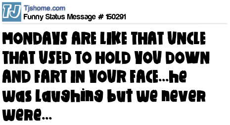 X says MONDAYS ARE LIKE THAT UNCLE THAT USED TO HOLD YOU DOWN AND FART IN YOUR FACE...he was laughing but we never were...