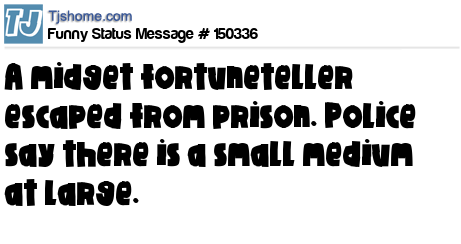 - # 163940 A midget fortuneteller broke out of the county jail. Police report there is a small medium at large.
