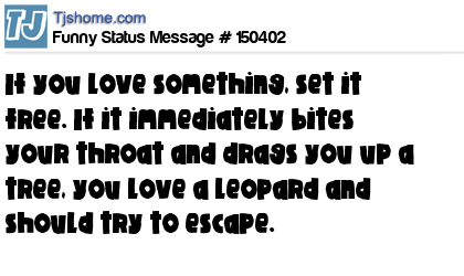 X says If you love something, set it free. If it immediately bites your throat and drags you up a tree, you love a leopard and should try to escape.
