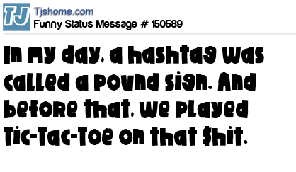 X says In my day, a hashtag was called a pound sign. And before that, we played Tic-Tac-Toe on that $hit.