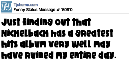 X says Just finding out that Nickelback has a greatest hits album very well may have ruined my entire day.