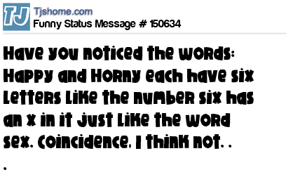 X says Have you noticed the words: Happy and Horny each have six letters like the number six has an x in it just like the word sex. Coincidence, I think not. . .