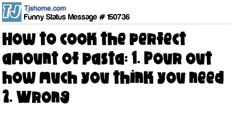 - # 192812 How to cook the perfect amount of spaghetti: Step 1. Remove from box how much you think you need. Step 2. Eliminate half the amount you thought you needed. Step 3. Invite a friend over for spaghetti if you want to skip step 2