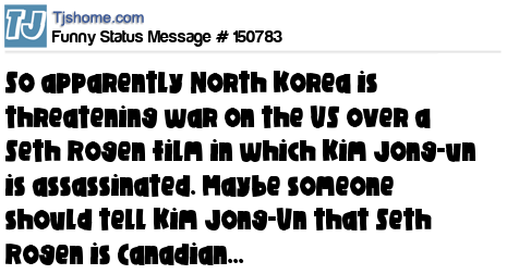 - # 150757 can someone please tell Kim Jong-Un that Seth Rogen is Canadian